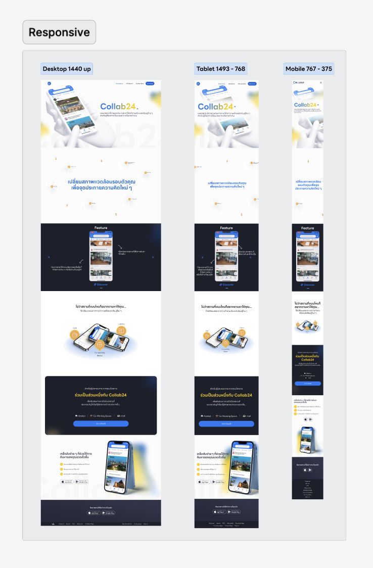 หลังจากที่ได้เวอร์ชันหน้าจอ Desktop เรียบร้อยแล้ว ก็ได้นำหน้าจอทั้งหมดมาปรับเป็นทั้ง size ของ Teblet และ Mobile