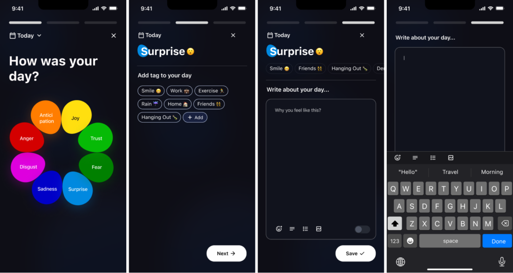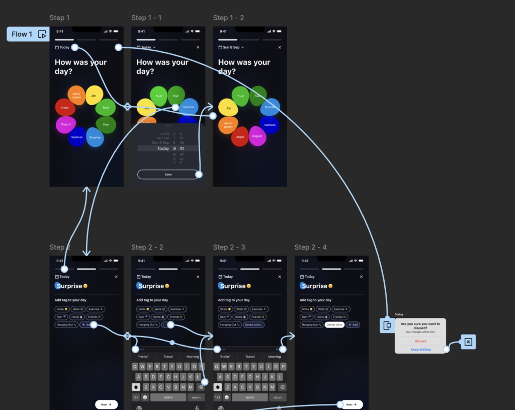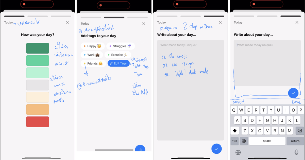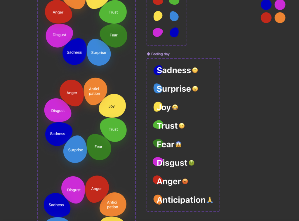 และวงล้อที่ให้ user เลือกความรู้สึก ก็ได้ไอเดียมาจาก Emotion Wheel มองครั้งแรกวงล้อนี้ค่อนข้างคล้ายดอกไม้เลยมาปรับใช้ในการออกแบบครั้งนี้