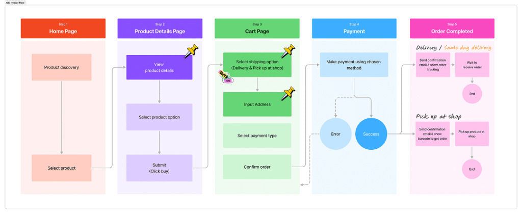 หลังจากที่ได้ soulution แล้วก็นำร่าง user flow ให้ละเอียดมากขึ้นเพื่อให้เห็นว่าฟีเจอร์ที่เพิ่มเข้าไปมี step การใช้งานอะไรบ้าง รวมถึงจะได้เห็น case หรือ state ต่างๆที่จะเกิดขึ้นใน feature นี้ โดยสามารถดูภาพรวมได้ที่ภาพ user flow ที่แนบมาด้านล่าง
